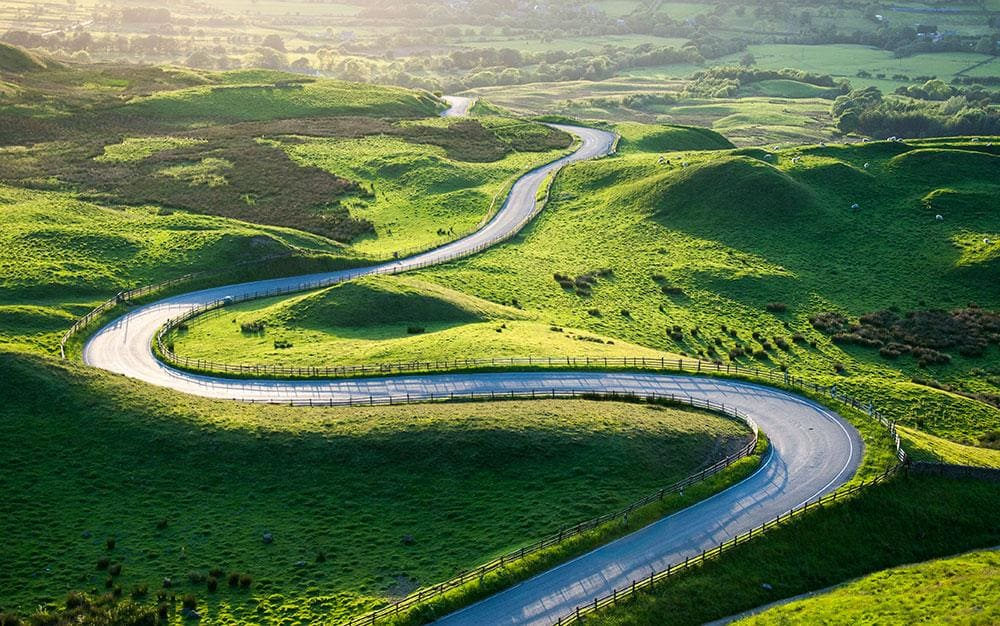 There are often clues as to what the road will do beyond the vanishing point. Road furniture like lamp posts and telegraph poles, buildings and even large vehicles can be seen over hedgerows on the road ahead. Taking on board these clues and helps with your predictions.