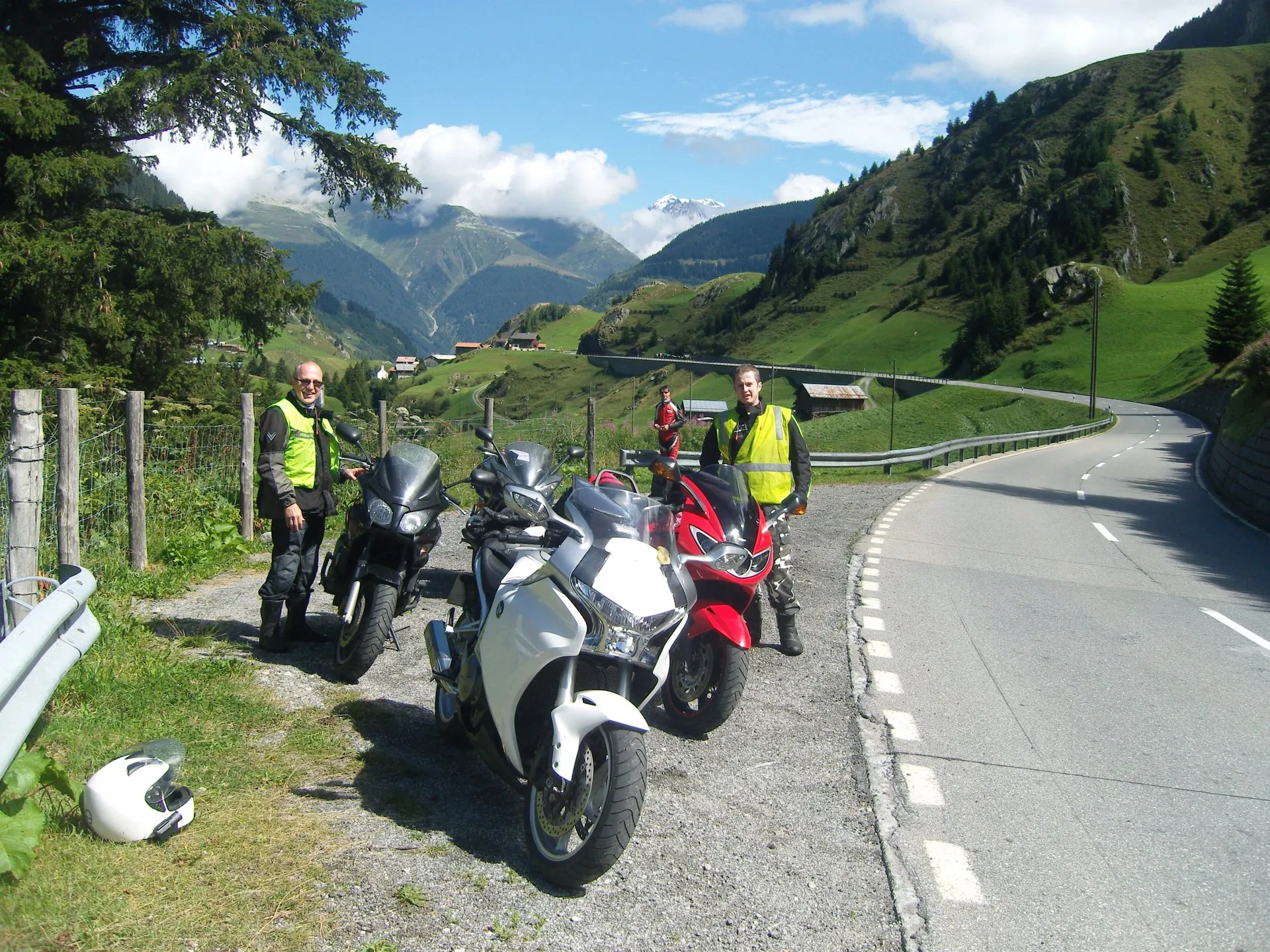 Starting the trip through the French countryside riding on many non-motorway roads down to the Swiss border. Riding around the north of Lake Geneva and then up into the mountains towards Interlaken and an onward ride the Grimsell Pass (as seen on James Bond Dr No). The base for the next 3 x days is in the valley at the bottom of three famous passes (Nuefenen, Grimsell, Furka) - The valleys and hairpin bends need to be ridden to be believed: pure riding heaven.